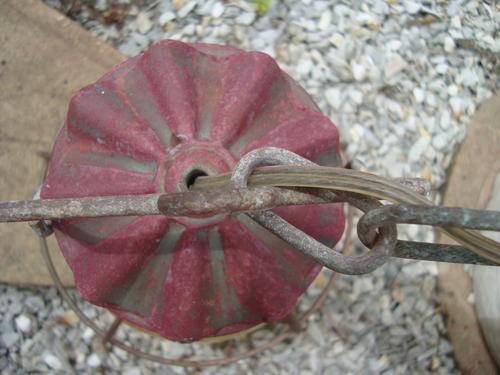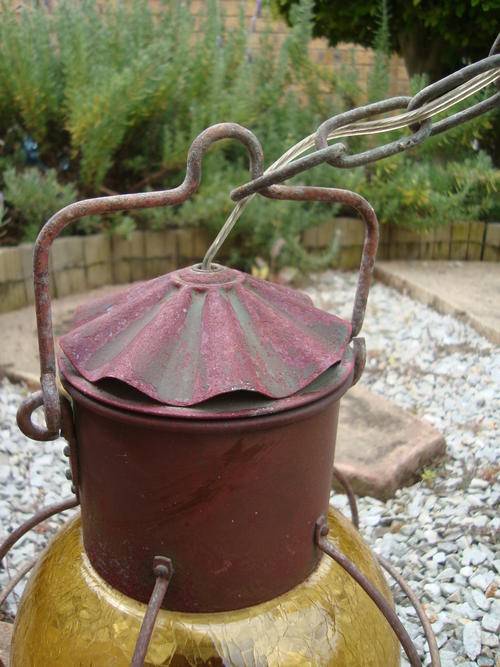 hangs on is still in good order....the lamp is electrical, i havnt seen many of them around probably