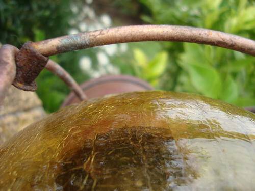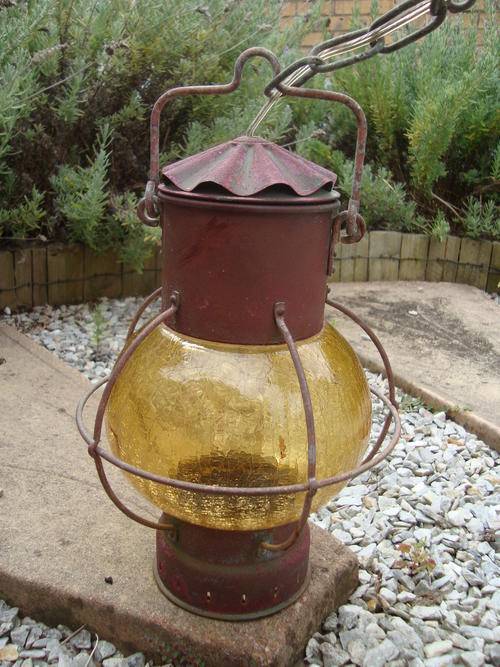 This old marine onion lamp is still in good condition....the original amber crackled blown glass globe
