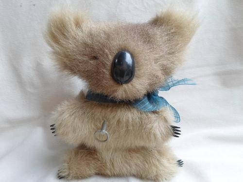 20CM TALL AND IN VERY GOOD CONDITION FROM THE LATE 1960's, EARLY 19670's. HE HAS A WIND-UP KEY ON HIS CHEST AND PLAYS "WALTZING MATHILDA" THESE FUR KOALA BEARS ARE VERY COLLECTABLE AS IN THE LATE 70's THEY WERE INCREASINGLY REPLACED BY ONES MADE OF SYNTHETIC MATERIALS.  REFER IMAGES