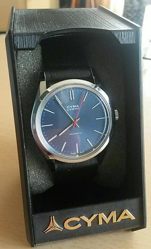 Rare vintage, yet unused collectible Cyma. Still in original display box.Swiss made.