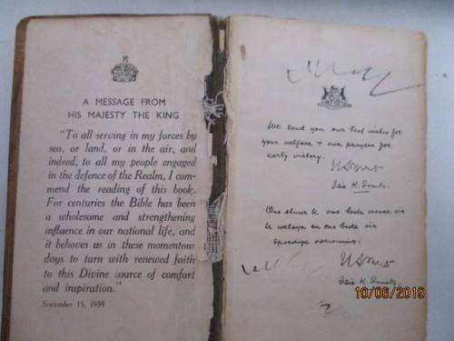 Rare WW2 BIBLE issued to troops by Jan and Issie Smuts - South African gifts and comfort - Merry Christmas 1943 as per photos. The covers are engraved wood. Postage with tracking no R 80-00 Postnet R 110-00