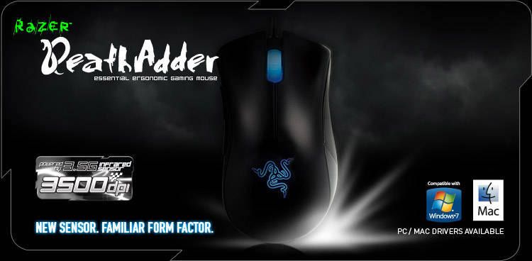 The Razer DeathAdder is the weapon of choice for gamers seeking a combination of comfort and unbridled gaming precision. Enjoy extended gaming sessions in comfort with its right-handed ergonomic form factor crafted for the world of competitive gaming; and when the difference between victory and defeat is determined between heartbeats, the 3500dpi Razer Precision 3.5G infrared sensor translates your every movement into frags with pinpoint accuracy.