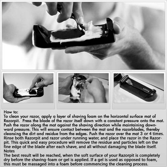 RazorPit uses friction to clean off the residue and thereby leaving you with a clean and sharp razor blade.
