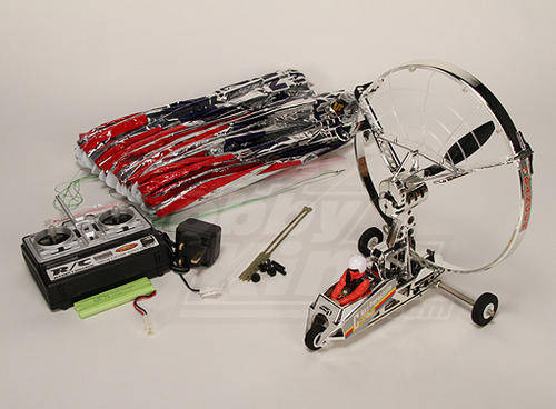 Brought in due to popular demand; the RC Toy/Hobby paraglider. A fun and easy to fly paraglider R/C Toy. The motorized paraglider hovers like a helicopter in a gentle breeze and can perform basic stunts. Included is all of the needed parts to complete the system plus remote control.