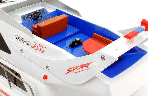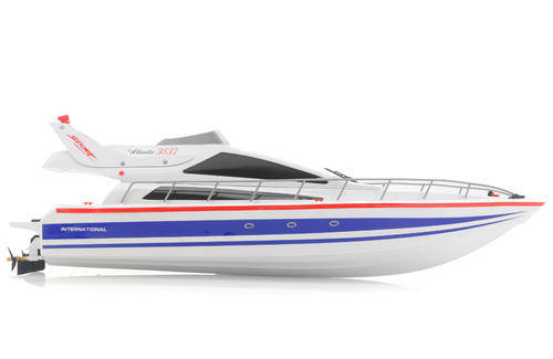 Cross the lake in no time and keep control over the “Atlantic” due to its 50m RC range. Suited for open water use on a lake, river or in the sea, the “Atlantic” cal also navigate smaller waters like your pool or pond. Built out of a single piece of ABS plastic, the “Atlantic” has an optimized aerodynamic hull and detailed construction. Easy to use for first time RC boat owners, this yacht is the ultimate toy. Set your sight on unlimited and sail towards the horizon.