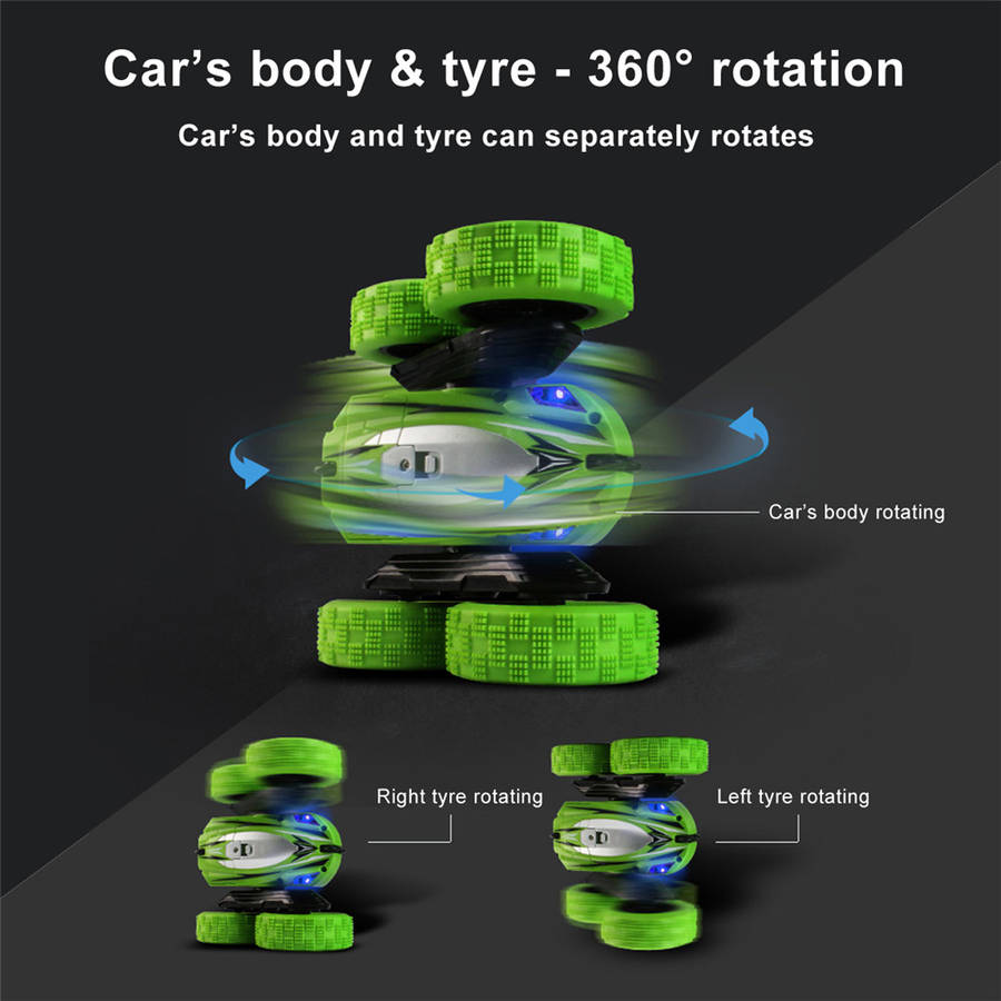 | Basic?information | Model:Mini stunt rc car Color:green | Power System | Motor:Brush Charge:Included Control way:Radio control |