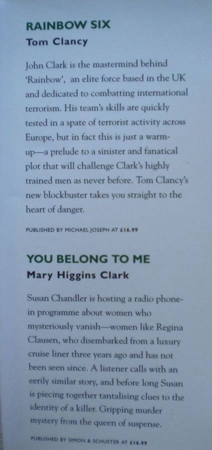 Reader's digest select editions: Rainbow six, You belong to me, Cloud nine, White-out. Good condition.