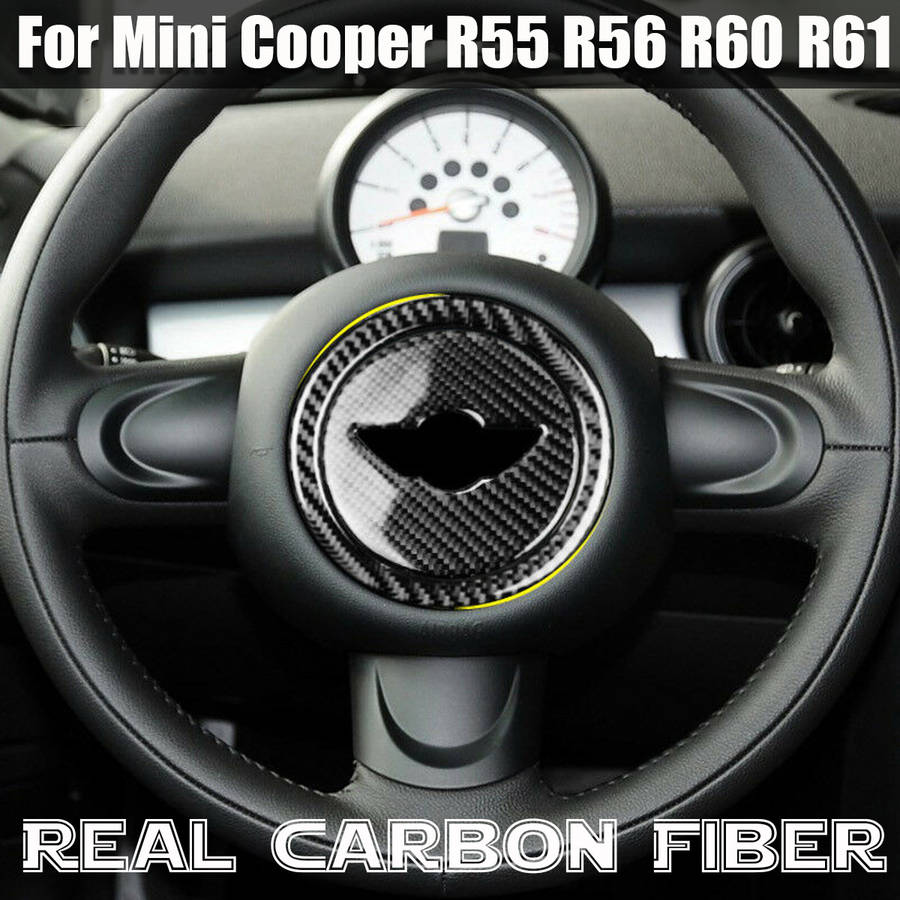 Real Carbon Fiber Steering Wheel Sticker Cover Trim For Mini Cooper R55 R56 R60 R61