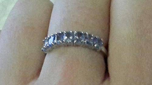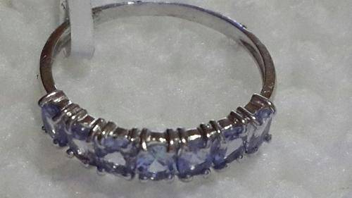 Gorgeous Genuine 7 piece Blue Tanzanite and sterling silver (platinum plated) ring up for grabs today (Size 7/O according to packing, it does, however, look more like a Size M). Specs below.