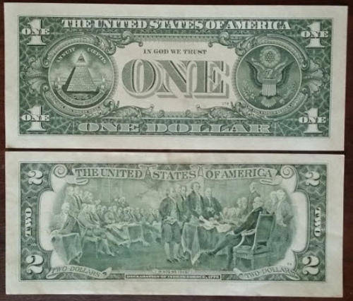 Real One Dollar Bill with Mandela and Two Dollar Bill - Low R1 Start
