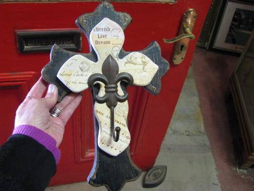 THIS CROSS HAS A HOOK ATTACHED TO THE FRONT