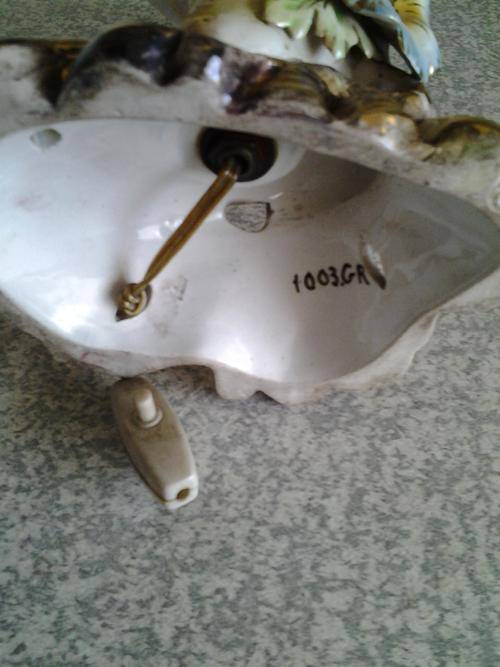 Really old table lamp, in very good condition although the electrical swith and cord need replacing. It has no chip or cracks.