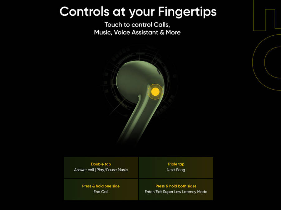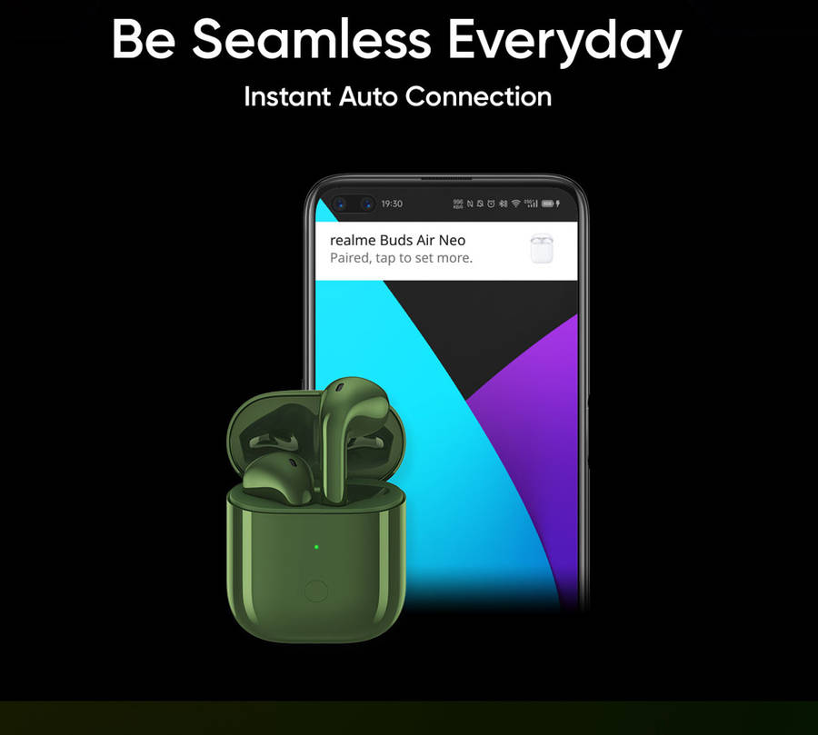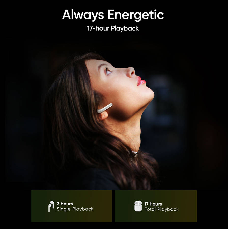 Specification: Chip :R1 Headphone Chip Sensiticity:-88bB(-80--92) Audio Codec: SBC AAC Connectivity: Bluetooth 5.0 ;10 meters Effective Range Battery: Up to 17 Hours Playback ; earphone about 3 hours (Not Support wireless charging) Waterproof Level:IPX4 Size & Weight Height: 51.3 mm*45.3 mm*25.3 mm ; Earphone:4.1g(single earphone) ; Charging Box:30.5g Controls :Support Touch Control Double-tap: Answer a call; play/pause music playback. Triple-tap: Skip to next song. Press and hold one side: Launch voice assistant; end/decline a call; Press and hold both sides: Enter/exit Gaming Mode. Package included: 1*Realme Air Neo TWS bluetooth5.0 Earphone with Charging Box 1* USB Charging Cable