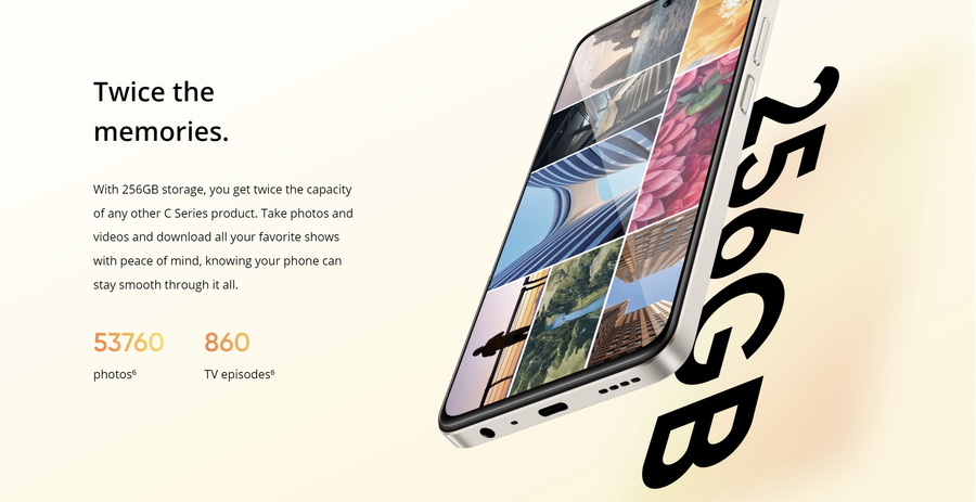 Choose a style that suits you with colour options like Sunshower and Rainy Night, reflecting the unique personality of the Realme C55.