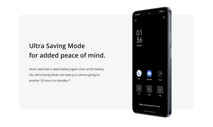 Stay powered up throughout the day with the massive 5000mAh battery. The 33W SUPERVOOC Charge ensures quick and efficient charging, so you spend less time plugged in and more time on the go.