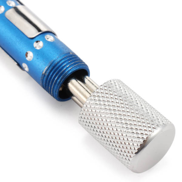 Features: - A hollow handle for storing diamond points. - Simply twist the sleeve to lock/release the tool. - The sharpening rod can be retracted and stored within the anodised aluminium case. - The unique design of the file cross-section allows the sharpening of a multitude of different items. - Use the Flat Face of the tool to produce a razor sharps edge on any number of difficult to sharpen tools. - Use the V shaped grooved channel for precision point sharpening eg. darts, fishhooks, scribers, bradawls etc.. - Use the curved side to sharpen serrated blades or to smooth any other curved surfaces even glass chips.