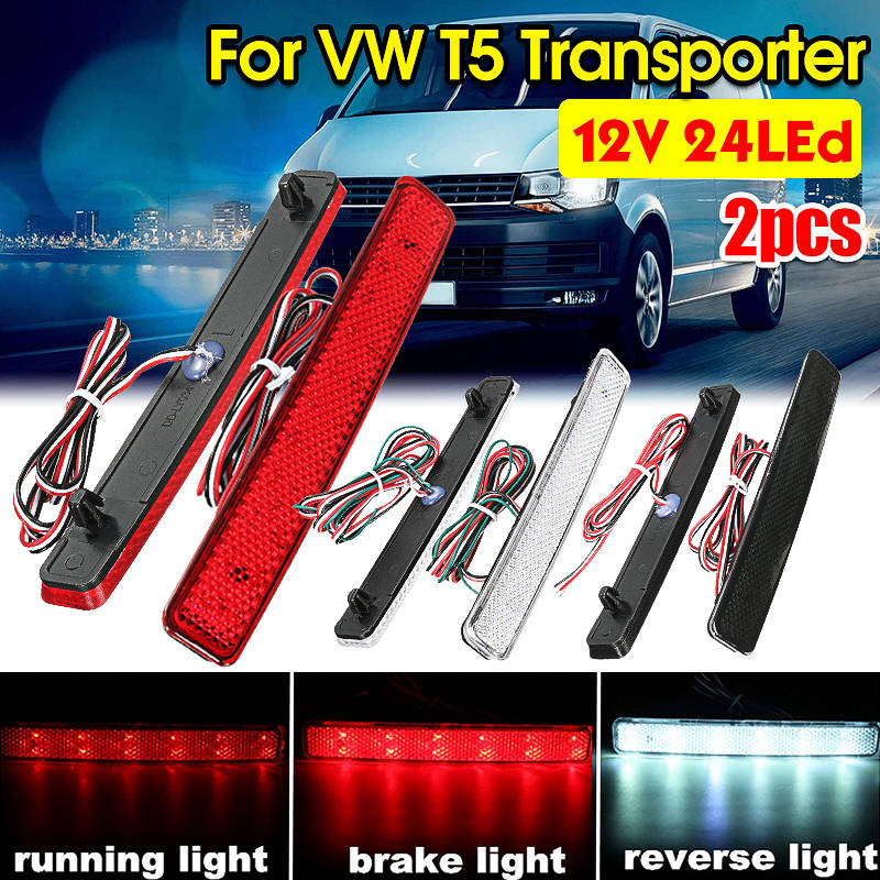 Specification: Light Source: LED Material: ABS Plastic Wattage: 3.8W Voltage: 12V Light Color: Red / Red+White Lens Color: Black / Red / White LED Number: 24 LEDs Fitment: For VW T5 Transporter 2003-2010 Qauntity: 2pcs (Left + Right)