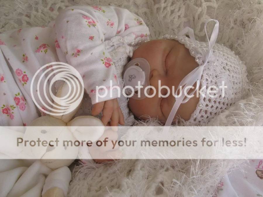 Born 1 August 2011    This little angel began to come to life using my own blends of Genesis Heat Set Artist Paints in many thin layers to achieve her beautiful complexion. She has subtle looking veins on her forehead, temples, arms and legs.