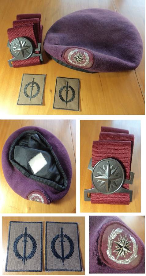 The beret suffered some damage to the area where the badge is affixed (see picture). The stable belt and the two badges looks like they are in new (unused) condition.