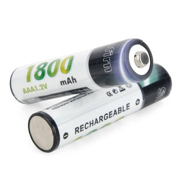 Description: Rechargeable AAA battery Capacity: 1800mAh Can be charged up to 1200 times Comes as a pair Dimensions: 1.77 in x 0.39 in x 0.39 in (4.5 cm x 1.0 cm x 1.0 cm) Weight: 0.74 oz (21 g) Package include: 1x 2 pieces