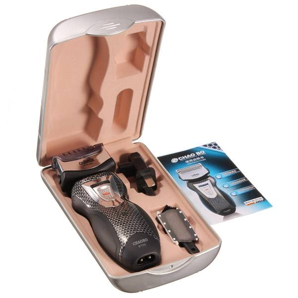 Features: 2 in 1 shaver with a new push long beard trimmer. Smart toil unique foil pattern captures hairs growing from different directions for a closer shave. Reciprocating double blade shaving system. Long hair trimmer for shaping beard, moustache and sideburns. Silver Pd alloy motor of high rotational speed. High-strength alloy mesh. Safe, easy and convenient to use and clean. One time electric charge can be continuosly shaved for 30 minutes. Ergonomic design for comfortable hold. Comes with replacement shaving head parts, portable plug and a elegant matched case. Lightweight & portable. Description: Item Type: Electric shaver Power Supply: AC 220V 50Hz 2W Size:12.5 x 4.8 x 3.5cm Charging time: 5 hours Adapter: We will send you an adapter (this is just plug adapter, is not transformer's adapter) according to your living country Package Include: 1 x Rechargeable Razor 1 x Charging Plug 1 x Cleaning Brush 1 x Replaceable Foil 2 x Replaceable Cutter 1 x User Guide Note: 1. The shaver body can not be washed. 2. The real color of the item may be slightly different from the pictures shown on website caused by many factors such as brightness of your monitor and light brightness. 3. Please allow slight deviation for the measurement data.
