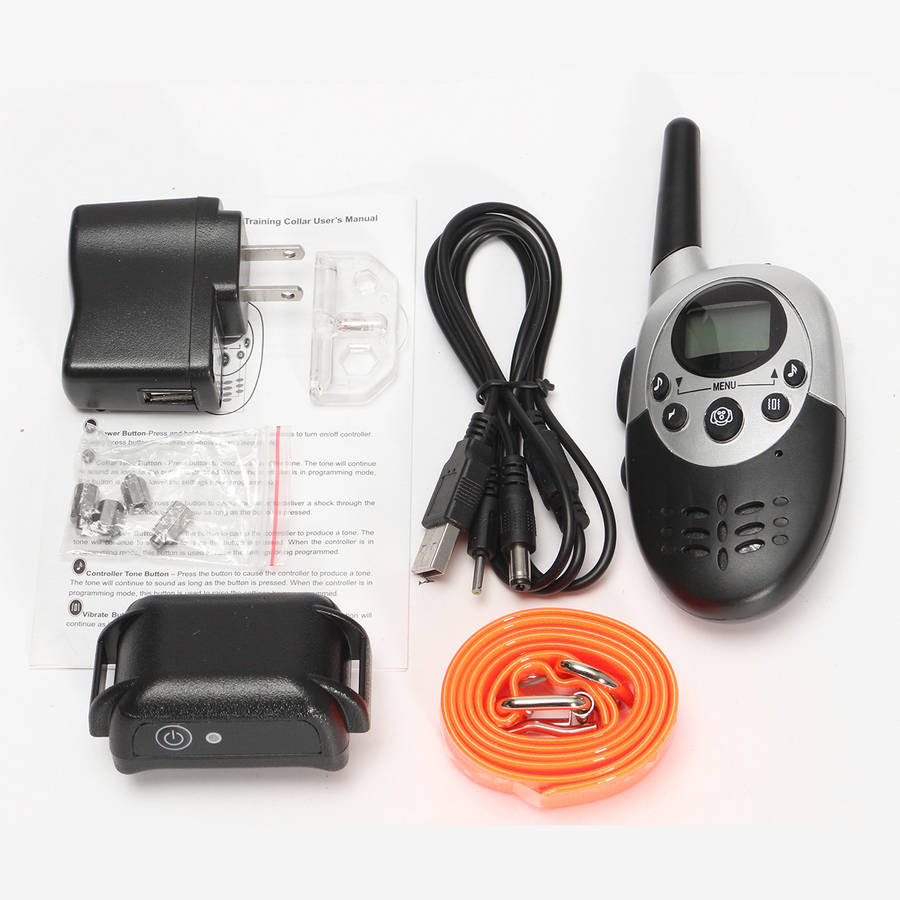 1 x Remote Training Controller 1 x Receiver Collar 1 x Test Bulb 1 x Belt 2 x Buttons and Screws 1 x Charge Cable (US Plug) 1 x English User Manual