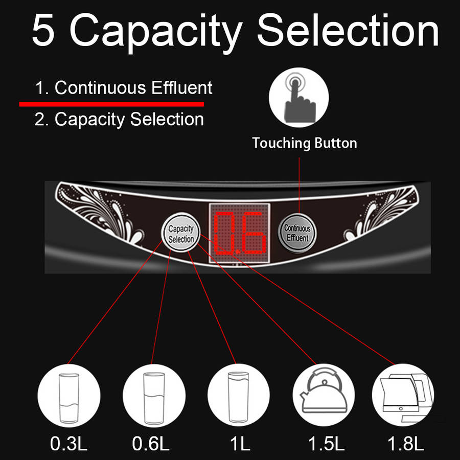 Color: Black, White Power supply: USB charging Capacity Selection: 5 gears, 0.3L, 0.6L, 1.0L, 1.5L, 1.8L Material: ABS plastic +304 stainless steel hard pipe + food grade silicone pipe Dimensions: Approx. 15x41cm/ 5.91x16.14 Package included: