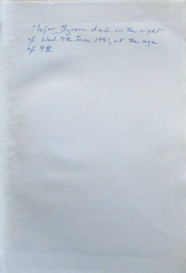 Front end-paper has inscription detailing Major Byron's death.
