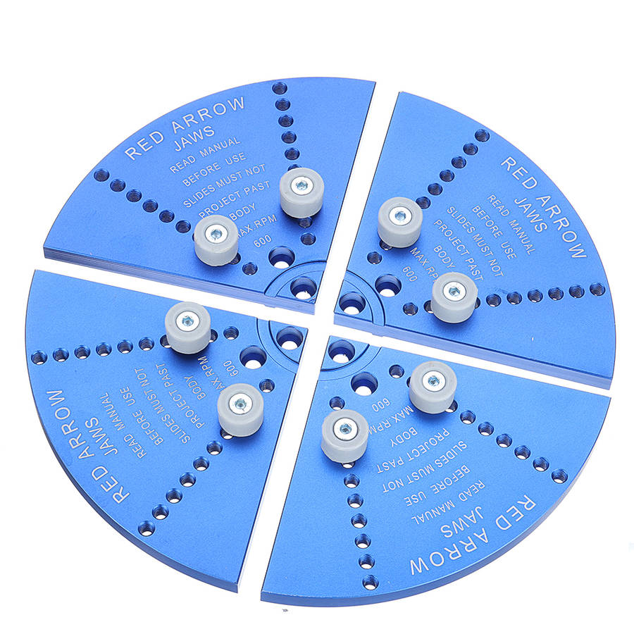 Specification: Material: Aluminum Alloy Color: Random Surface treatment:Anodizing Size: 10 Inch Clamping range: 5-23cm bowls hollow With 8pcs silicone clamping screw(not damage workpiece surface) Fits all RED ARROW Chuck NAVO Chuck Features: Accessory buffer kit includes 8 long pin buffers. Extra buffer kits facilitate better holding power on various shaped bowl rims. Fitsall RED ARROW Chuck NAVO Chuck Easily grip the rim of platters, bowls, and hollow forms