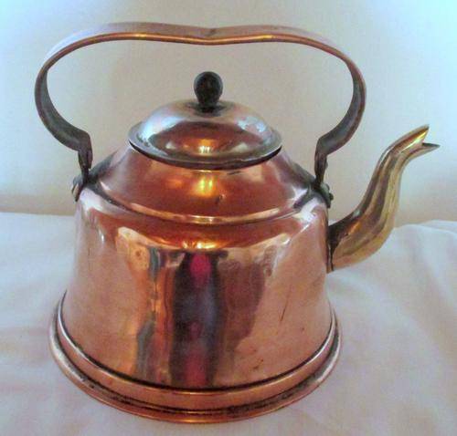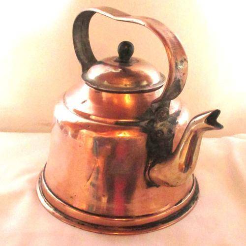 Beautiful Red copper kettle, ideal for the gas stove. Please see condition. Dimensions: height 20.5cm,width 24cm, bottom 18.5cm,top opening 8cm,lid width 18.9cm, Shipping R80.00