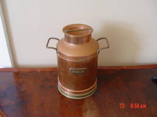 This Copper Jug has display of "Melk" on it,  no other labels.  Weight 557grams Stands 23cm Have put a magnet on Can, it does not stick.