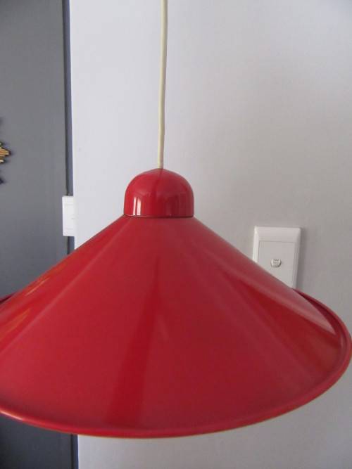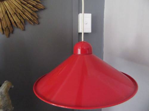 Red Enamel Hanging light Size:31cm dia x 75cm drop.