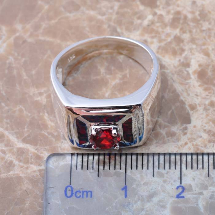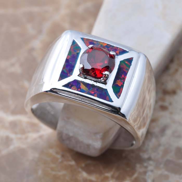 Red FIRE OPAL RED GARNET SILVER STAMPED RING