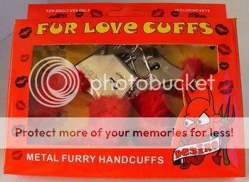 RED FUR AND METAL LOVE CUFFS WITH KEYS