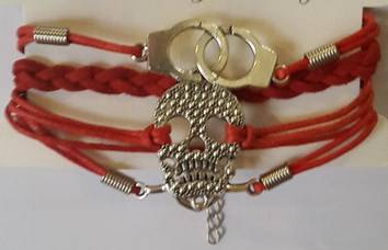 RED INFINITY BRACELET TEXTURED SKULL WITH HANDCUFFS