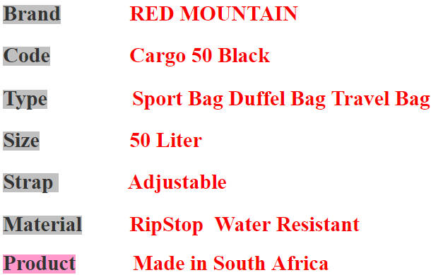 Red Mountain Cargo Bag Sports Bag Travel Bag Duffel Bag Cargo 50 Water Resistant