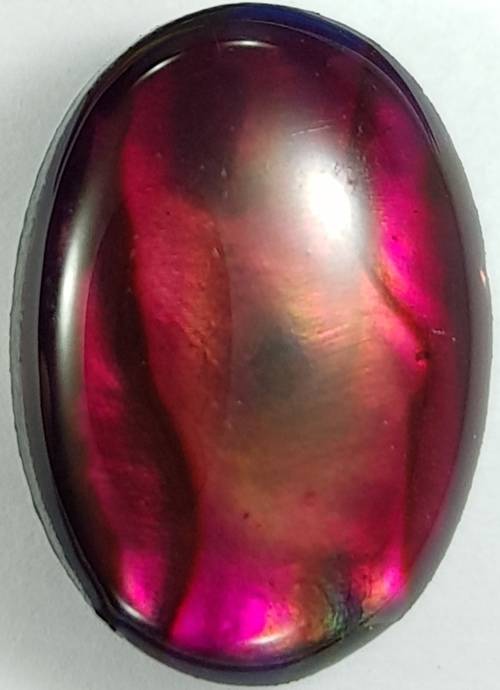 NATURAL PAUA SHELL FLAT OVAL CABOCHON - TINTED RED AND COATED WITH A CLEAR RESIN