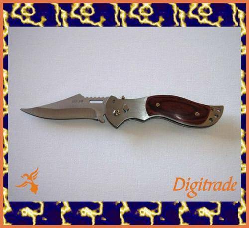 RED RIDGEBACK FLICK BLADE LOCK KNIFE. ^ This knife has a flick-action lockable blade. The blade is very sharp. ^ The handle is finished in immitation wood, and the blade manufactured from Stainless Steel. ^ Size of Blade: 90mm. Size of Handle: 110mm. Please note that we use stock photos. Images shown may differ slightly in style, design, brand, shade and tone. Images are used for illustration purposes only. |