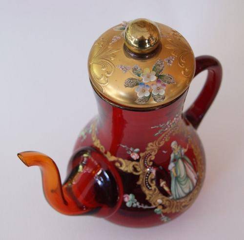 RED VENETIAN GLASS TEAPOT FROM THE 20TH CENTURY