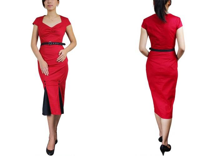 The dress is made of comfortable fabric, cotton/spandex blend, ruffled in the center of bust, with a belt in waist, the whole design show your stature perfectly.