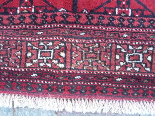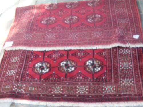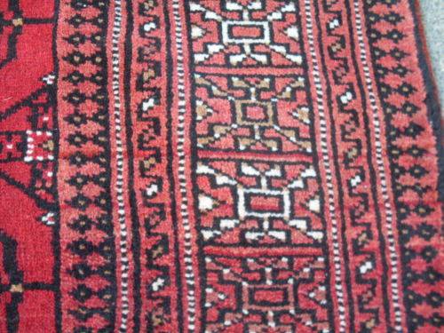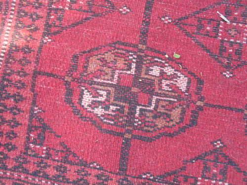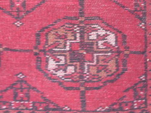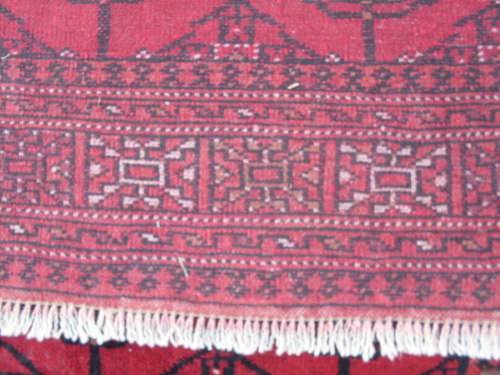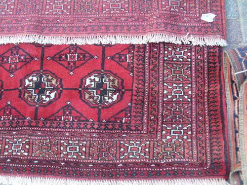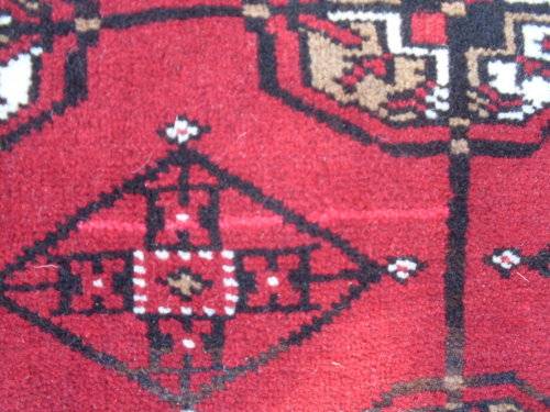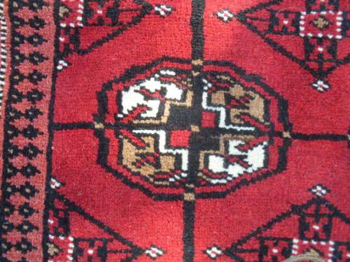 Fields of rich red and the "tekke Bokhara or repetitive gul design