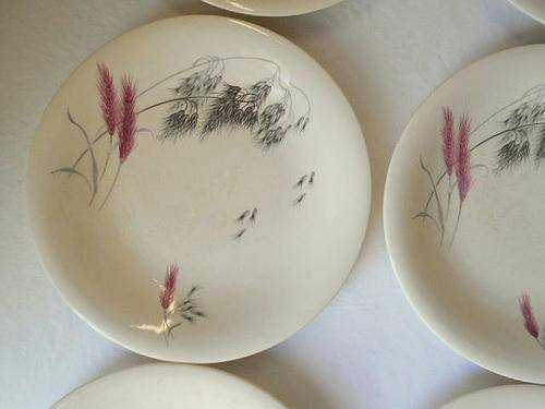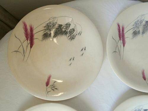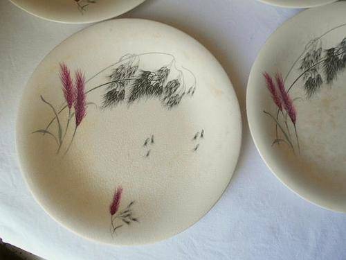 All plates are more or less faded, stained and grazed, but no damage! And actually the wheat is pink!