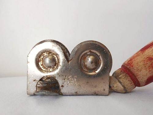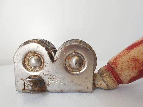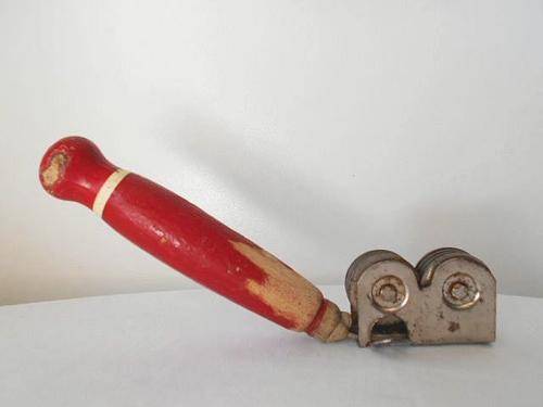 LOVELY VINTAGE RED WOODEN HANDLED KNIFE SHARPENER, MADE IN USA