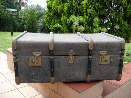 leather handles all in good order. the locks and latches are all original and still working. the inside is clean considering its age.