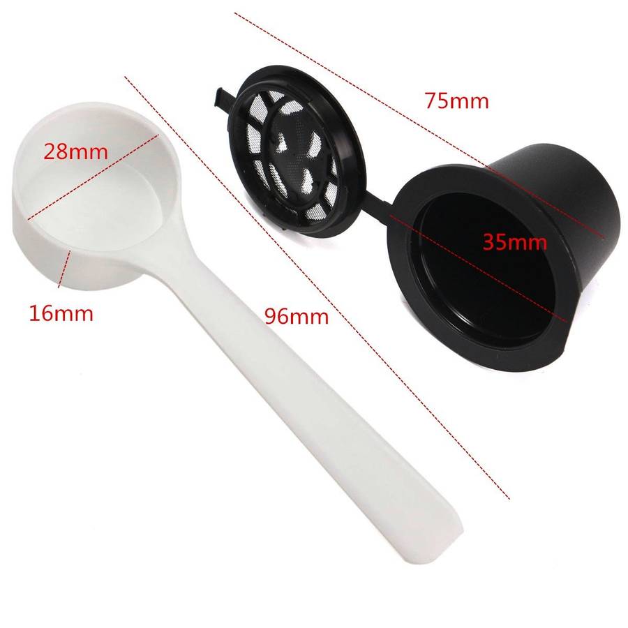 Package weight: 0.01 kg Specifications Color: Black Material: food grade PP plastic + stainless steel filter Size: 35mm/1.4 inch Suitable For: Nespresso Reusable coffee espresso Cup Features - This refillable coffee capsule is made of food grade PP plastic and stainless steel filter, which does not cause any health issues. - The reusable Nespresso cup is refillable. - You can even brew Tea and Hot Chocolate in your Nespresso machine. Packing Included 1 x Coffee Capsule Cup 1 x Plastic spoon