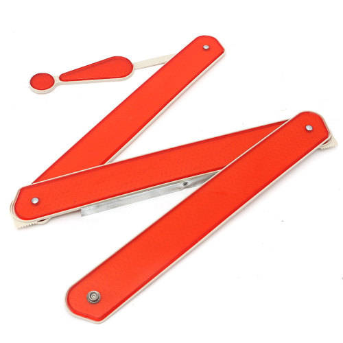 Durable plastic with red reflecting panels and a reflective exclamation sign on top.
