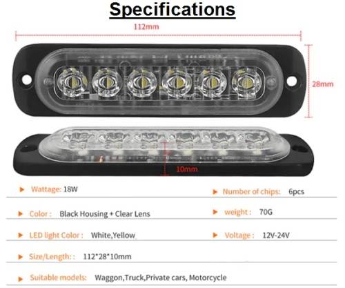 Reflector Light - 12V - 24V 18W LED Reflector Light - White & Amber(Yellow) LED Flash Warning Light