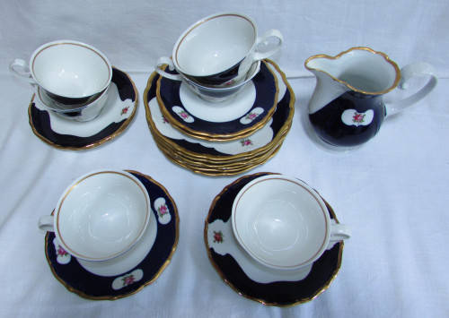 There are two different design saucers which adds to the charm of the set, and also two different back stamps