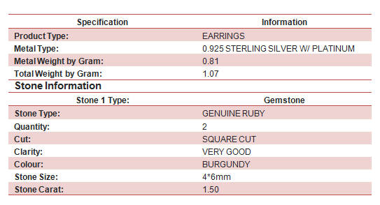 Stunning 1.00ct Genuine Ruby and sterling silver (platinum plated) earrings up for grabs today. Comes in a free jewelery box.