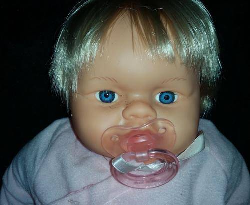 UP FOR BID WE HAVE THIS CUTE BABY DOLL WITH HER DUMMY. SHE HAS BEADS IN HER BOTTOM AND LEGS THAT GIVES HER THE EXTRA WEIGHT SHE IS 45CM TALL NICE GIFT FOR THE YOUNG MOMMY FOR HOURS OF PLAY